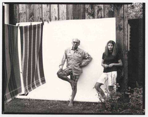 En 1960, Saul Steinberg conoció a Sigrid Spaeth, una joven alemana 22 años menor que él. “Gigi”, como la llamaban todos, prefería llevar faldas largas y el pelo suelto, pero desde el principio, el dibujante quiso vestirla con ropa cara y joyas. Su tormentosa relación duró 35 años durante los que nunca dejaron de discutir en público y en privado. En algún momento, Gigi adoptó a Papoose, un gato negro con una mancha blanca en el pecho. Por las fotos deducimos que probablemente fue en 1976.