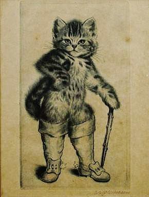 Aquí se trata del hijo menor del molinero y de un gato que le deja su padre. Uno de los hermanos mayores hereda el molino y el otro, las mulas. El joven se lamenta, pero el gato le pide que le encargue botas a medida; el joven se asombra al oír al gato hablar y obedece, gastándose el poco dinero que le queda. El gato caza un conejo y se lo ofrece al Rey de parte del marqués de Carabás.
