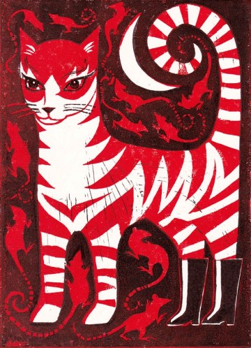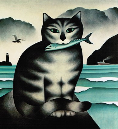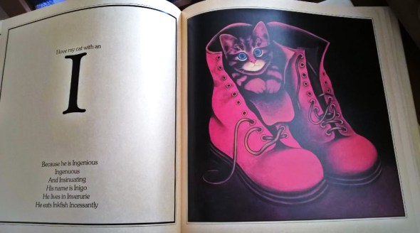 Angela Carter escribió dos libros infantiles dedicados a gatos. El primero, “Comic and Curious Cats”, es una especie de abecedario. Por ejemplo, en la letra I dice: “Me gusta mi gato con I porque es Ingenioso, Ingenuo y se Insinúa. Se llama Iñigo, vive en Inverurie y come calamares Incesantemente. Claro que en inglés calamar es “Inkfish” y también empieza por I, pero no hemos encontrado ningún habitante de los mares que empezara por I en español. El libro está ilustrado por Martin Leman, a quien dedicaremos una entrada muy pronto.