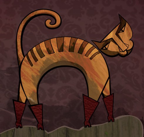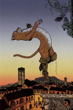 En esta versión, Gato ya tiene botas cuando conoce a un joven tan descarado como él. Ambos viven en Bérgamo y hablan italiano, aunque Gato también habla francés porque “solo se puede ronronear en francés”. Los dos son tramposos, mujeriegos o “gatariegos”, y sobreviven a base de trampas y engaños hasta que el amo se enamora perdidamente de una joven a la que ven pasar en compañía de su vieja criada. Gato no puede creerse que su amo ya no esté interesado en otras mujeres y piensa que la única solución es conseguir que la joven se entregue a él. Eso le curará seguro.