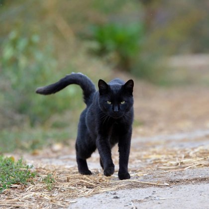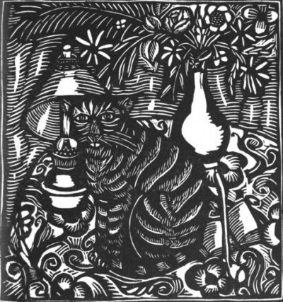 ¿Qué hay? No hay nada. Sí. Allí abajo, un poco por encima del suelo, quedan suspendidas dos estrellas: Los ojos de un gato miran la casa. El gato está aquí y todo revive para él. El gato pasea: todo está en calma. Se acerca lentamente a un tragaluz: entra, las estrellas iluminan el sótano, blanco como el pasillo de una abadía. El gato ronronea mientras avanza. Está tranquilo, nada ha cambiado en su casa. Vuelve a saltar en la carretera de campo y da una vuelta por el prado. El gato pasa revista a toda la Noche. En las ventanas de las casas titilan vidrieras. El gato se tumba en un escalón de la casa. Sus ojos se hacen muy grandes, ¡ve en la Nada!