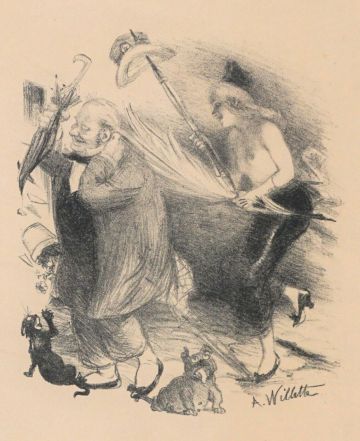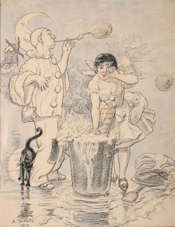 Adolphe Willette siempre quiso tensar la cuerda. Se atrevió a mofarse, a criticar, a burlarse, a usar el desnudo hasta el punto de que algunos le tacharon de pornógrafo. En 1905 publicó una viñeta de una inmensa lucidez en Le Courrier français. Una vez dijo: “Era mucho más feliz siendo infeliz”.