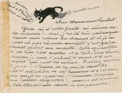 La vida empezó a sonreír a Willette en los últimos años del siglo XIX y el éxito seguiría acompañándole casi hasta su muerte. En 1905, el Salón de París expuso por fin el cuadro “Parce Domine”, treinta años después de haberlo rechazado en 1885. Ilustró “Los miserables”, de Víctor Hugo, y varias entregas de los libros “Claudine”, de Colette (https://gatosyrespeto.org/2018/12/13/los-gatos-de-colette/).