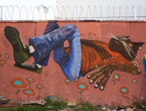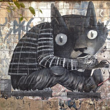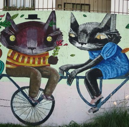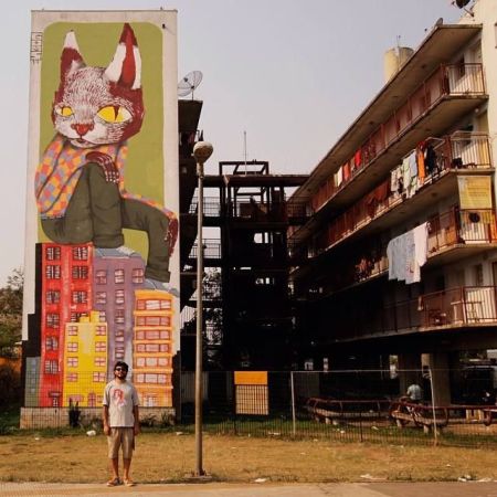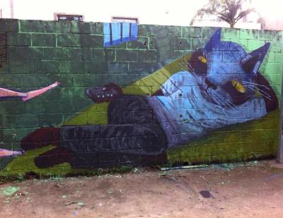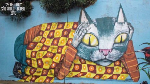 Muchos artistas urbanos dedican algunos murales a gatos, y ya hemos publicado una entrada acerca de uno de ellos, el célebre C215 (https://gatosyrespeto.org/2017/10/19/los-gatos-del-grafitero-c215/), pero nunca habíamos encontrado uno que solo pintara gatos. Se trata de Thiago Goms, un artista brasileño, concretamente de Sao Paolo, que vive una verdadera historia de amor con los gatos.