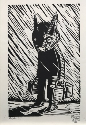 No solo observaba a las personas a su alrededor, su familia, sus amigos, sino también a los gatos callejeros de la ciudad. Poco a poco, basándose en la influencia de algunos cómics y de otros artistas, nació un personaje gatuno antropomorfo capaz de plasmar el comportamiento de la gente que le rodeaba. Es posible que los gatos de Thiago Goms tengan nombre, pero si es así, no se lo ha dicho a nadie.