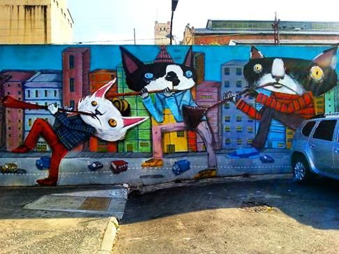 Esperamos sinceramente que el mural del artista brasileño siga donde está muchos años, al igual que su gato roquero que adorna una casa en una calle del pueblo. Por cierto, hay una pequeña ciudad en Arizona llamada Miami que también decoró sus paredes con gatos: (https://gatosyrespeto.org/2015/10/15/los-121-gatos-de-miami-arizona/).