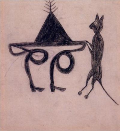 Bill Traylor es uno de los tres grandes artistas de arte marginal de Estados Unidos. Los otros son Martín Ramírez (1895-1963), procedente de México e internado en un hospital psiquiátrico de California, y Herny Darger (1892-1973), bedel en un hospital de Chicago, pero al contrario del artista del que hablaremos hoy, ninguno de los dos dibujó gatos.