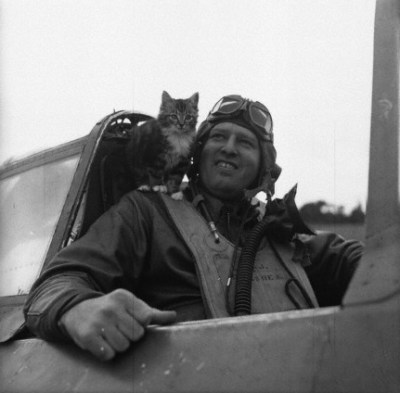 No solo hubo gatos en barcos, también en aviones. Tal vez el más famoso sea Kiddo (https://gatosyrespeto.org/2014/09/05/kiddo-el-primer-gato-transatlantico/). De Sparkplug solo tenemos una foto, igual que de otro gatito desconocido.