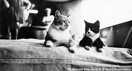 Ginger y Fishcake, dos grandes compañeros, eran los gatos del Hood. El barco participó en la Guerra Civil española al ser asignado a la Flota Mediterránea. El Hood tuvo varias mascotas, entre ellas un canguro, además de varios perros. El viejo barco desapareció el 24 de mayo de 1941 cuando entabló combate con un moderno barco alemán. Se sabe que Ginger y Fishcake ya no estaban a bordo.
