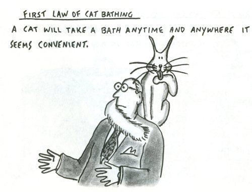 Primera ley del lavado gatuno: Un gato se lavará en cualquier momento y lugar que le parezca oportuno.
