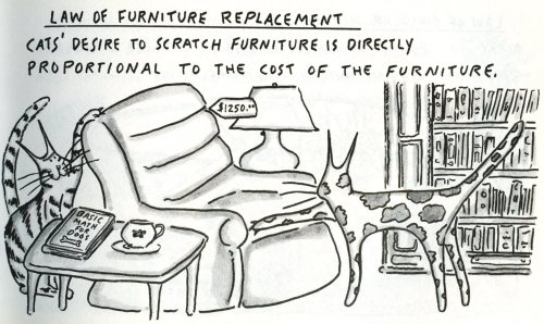 Ley del cambio de muebles: El deseo que siente un gato por arañar los muebles es proporcional al precio de dicho mueble.