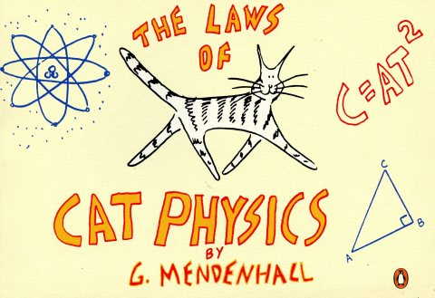 La editorial Penguin publicó en 1993 un pequeño libro de 30 páginas titulado “The Laws of Cat Physics” (Las leyes de la física gatuna), de G.A. Mendenhal, con la descripción de leyes de física gatuna en 60 viñetas. A pesar de buscar por todas partes no hemos encontrado nada sobre su autor. Lo poco que sabemos está en el prólogo del libro, y lo traducimos aquí: