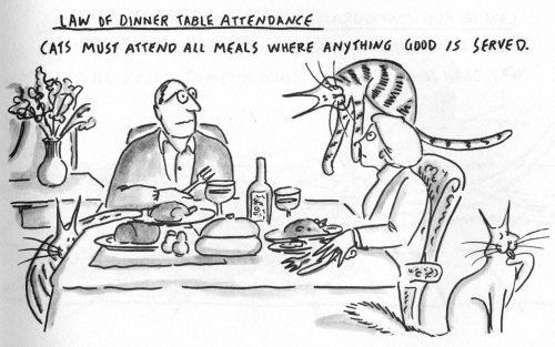 Ley de la presencia gatuna en la mesa: El gato siempre estará presente cuando se sirva cualquier cosa apetecible.