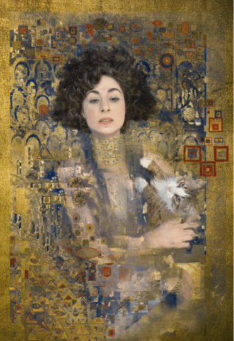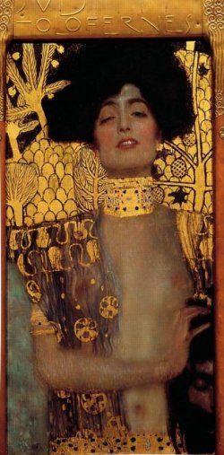 “El siguiente es el de Julie con Rola. Julie adora a los gatos y a Gustav Klimt, y estaba empeñada en que debía ser un retrato suyo. Pero es conocido de todos que Klimt era un notable misógino y me incliné por Judith con la cabeza de Holofernes en la mano izquierda”.