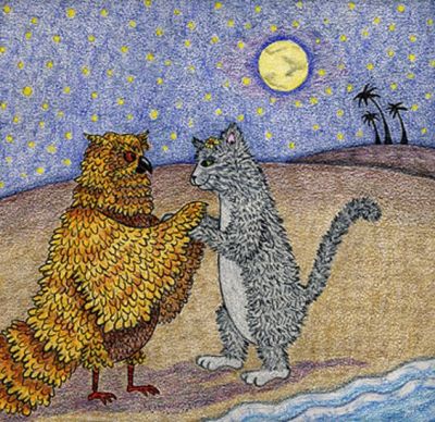 “El búho y la gatita” es uno de los poemas más apreciados de Edward Lear; lo compuso para una niña de tres años, Janet Symonds, cuyos padres eran grandes amigos suyos.