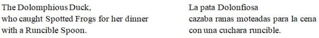 Edward Lear inventaba palabras como “el árbol Pong” que crece en las tierras donde llegan el Búho y la Gatita, pero no cabe duda de que la más famosa es la cuchara “runcible” con la que comen picadillo y membrillo en el banquete de bodas. La utilizó en varias ocasiones, incluso para describirse a sí mismo diciendo que llevaba “un sombrero runcible”.