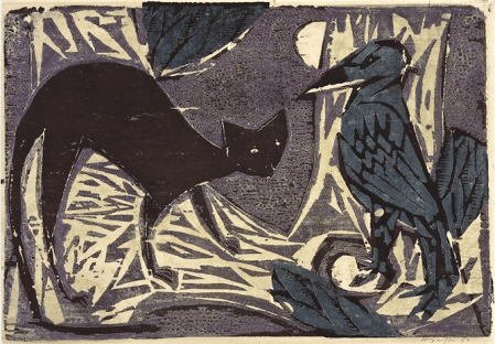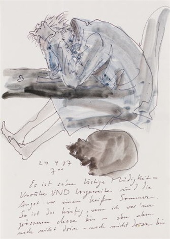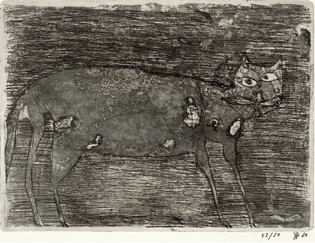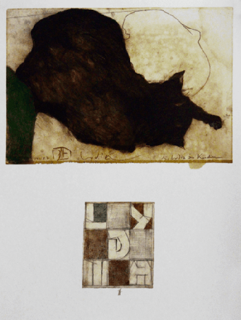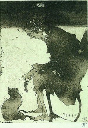 Desde siempre Horst Janssen había dibujado animales, entre ellos gatos, pero en la década de los ochenta la gata Lydia entró en su vida y debió ocupar un lugar muy importante. Por los numerosos retratos, sabemos que era una gata negra, y nada más. En ninguna biografía del artista se menciona a Lydia, tampoco si le gustaban los gatos, aunque nos atrevemos a decir que basta con ver sus dibujos y grabados para afirmar que sí, claro que le gustaban mucho los gatos.