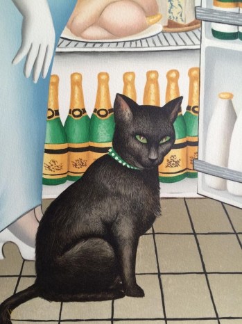 No pintó muchos gatos, se dedicó sobre todo a los seres humanos, quizá porque no es tan fácil reírse de los animales como de nosotros mismos. Uno de nuestros favoritos es “Cuatro gatos hambrientos”. La mirada de los gatos está fija en la langosta que dos humanos (solo vemos sus manos y antebrazos) están a punto de repartirse. Esperemos que los cuatro felinos también pudieran participar en el festín.