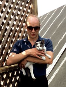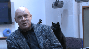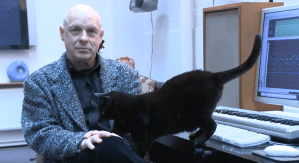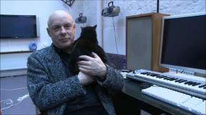 Por casualidad encontramos en YouTube parte de una entrevista a Brian Eno. Probablemente fuera hecha en 2018, y la persona que colgó el vídeo lo tituló “Brian Eno y su gato manipulador” (https://www.youtube.com/watch?v=O_0RcB-Vj7M). Brian Eno debe llevar cierto tiempo contestando a una pregunta cuando aparece un precioso gato negro que, sin dudarlo un momento, salta encima de la mesa de trabajo, decidido a que le acaricie. El músico comenta que su gato “busca publicidad”. Al cabo de unos treinta segundos, el felino se coloca en el hombro de un impertérrito Brian Eno que intenta seguir con la entrevista.