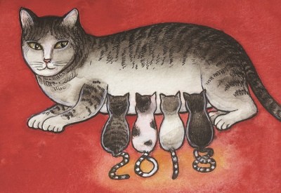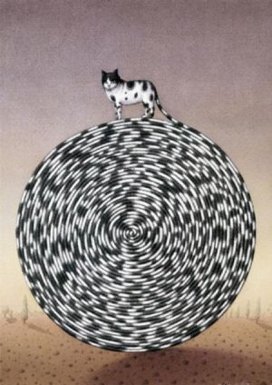 A esta le siguieron el gato con pelota de lana como rabo con las Torres Gemelas de telón de fondo, el 22 de marzo de 1993; otro gato rodeado por un rabo sin fin y numerosos ratones, el 3 de enero de 2005, y el último, el 5 de octubre de 2009, con un gato más allá del borde del precipicio.