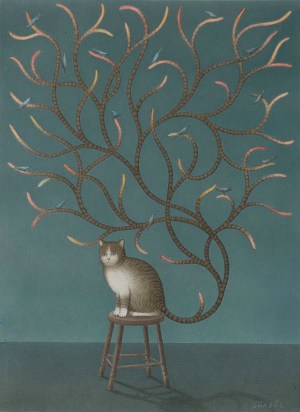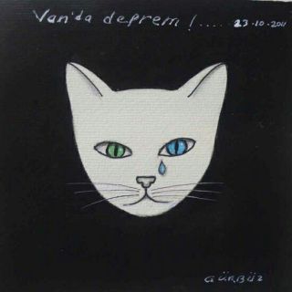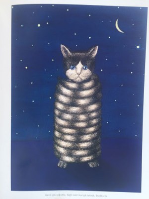 Al parecer, Gürbüz Doğan Ekşioğlu tiene cierta fijación por los gatos con cola infinita. No hemos encontrado fechas de esos dibujos que nos permitieran saber si pertenecen a un periodo concreto o si se repiten a través de los años. El artista reconoce que a menudo repite los motivos en los cuarenta años que lleva pintando.