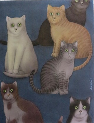 Ignoramos si Gürbüz Doğan Ekşioğlu tiene gatos, pero algo nos empuja a pensar que comparte su vida con alguno. Ya se sabe que los gatos no solo son muy queridos en Estambul, sino en todo el país, y alguien que pinta gatos tan a menudo debe observarlos de cerca.