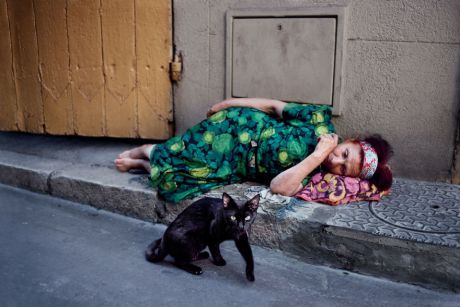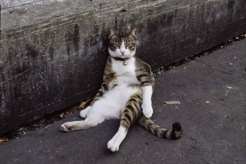 Ha hecho pocas fotos de gatos en comparación a las de perros, ovejas, camellos, etcétera. Quizá porque el gato no se adapta bien a su estilo. Aun así, creemos que merece la pena dedicarle una entrada, a pesar de que no llegue a la altura de su amigo Elliott Erwitt y de muchos otros. Pero es un acérrimo defensor de los animales, lo que le agradecemos.