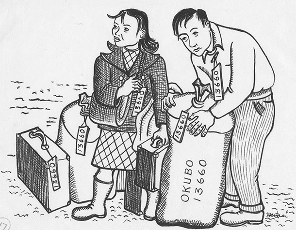 El 19 de febrero de 1942, la vida de Miné Okubo, y de gran parte de la comunidad japonesa de Estados Unidos cambió para siempre. El presidente Franklin Roosevelt firmó la Orden Ejecutiva 9066 para el traslado forzoso de japoneses y descendientes de japoneses afincados en la Costa Oeste a campos de detención. La familia Okubo fue separada e internada en diversos campos.