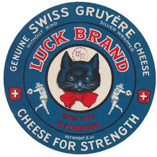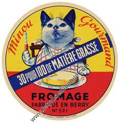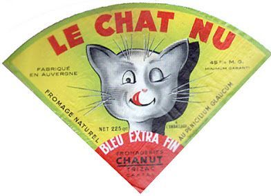 Ahora bien, ¿por qué hubo una época – los años cincuenta – en Francia en que el gato personificó el queso? Es verdad que a muchos les gusta el queso, pero suelen inclinarse por los curados. Entre los 20 anuncios que hemos encontrado, todos son quesos blandos y franceses, excepto uno de gruyere suizo escrito en inglés, por lo tanto dirigido a la exportación.