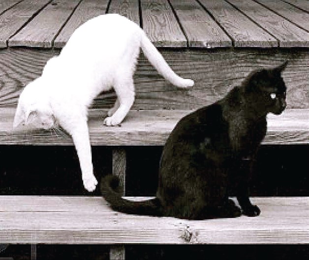 Pero salté y el gato blanco creyó que yo era su sombra negra. En vano intenté convencerle de que yo tenía una sombra mía. Él se empeñó en que solo fuera su sombra y que imitase sin recompensa alguna cada uno de sus gestos. Si bailaba, yo debía bailar, beber si bebía, comer si comía, cazar sus presas. Pero yo bebía la sombra del agua, y comía la sombra de la carne, me hastiaba acechando bajo la sombra del pájaro…