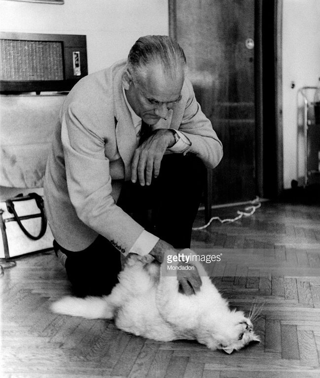 El poeta Giuseppe Ungaretti sentía auténtica pasión por los gatos y debió tener muchos, pero dos quedaron registrados en los anales de la historia: Kiki, un regalo del escritor Alberto Moravia, y el más famoso de todos, Bobosse, con el que se hizo toda una serie de fotos.