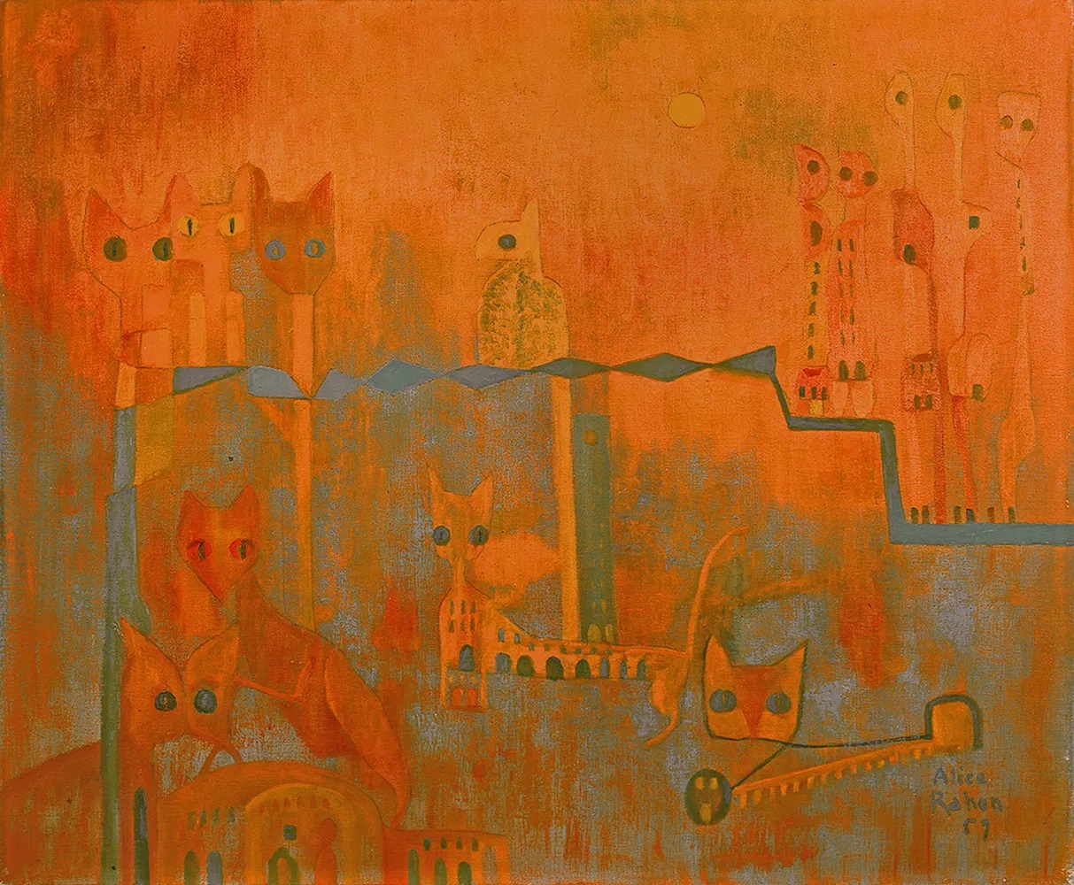 De las tres grandes pintoras surrealistas no nacidas en México, pero que se convirtieron en mexicanas por elección propia, Alice Rahon es, sin duda alguna, la menos conocida. Las otras dos eran Remedios Varo (https://gatosyrespeto.org/2017/04/13/los-gatos-surrealistas-de-remedios-varo/) y Leonora Carrington (https://gatosyrespeto.org/2018/03/15/los-gatos-en-la-obra-surrealista-de-leonora-carrington/). Remedios, española, y Alice, francesa, se llevaban un año; Leonora, británica, era diez años más joven. No solo una tendencia artística las unía a las tres, también su amor por los gatos.