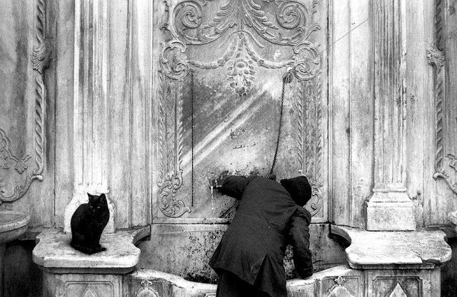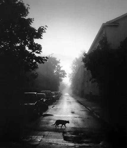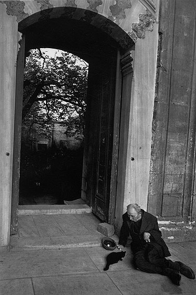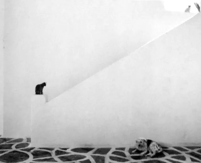 Pero aunque sus fotos de gatos no sean numerosas, nos ha parecido que merecía la pena enseñar la visión de este fotógrafo. En muchas de sus imágenes, el gato es un ser pequeño perdido en un recuadro muy grande, no es el centro de la mirada, pero nos da la sensación de que el fotógrafo lo contempla con gran cariño.