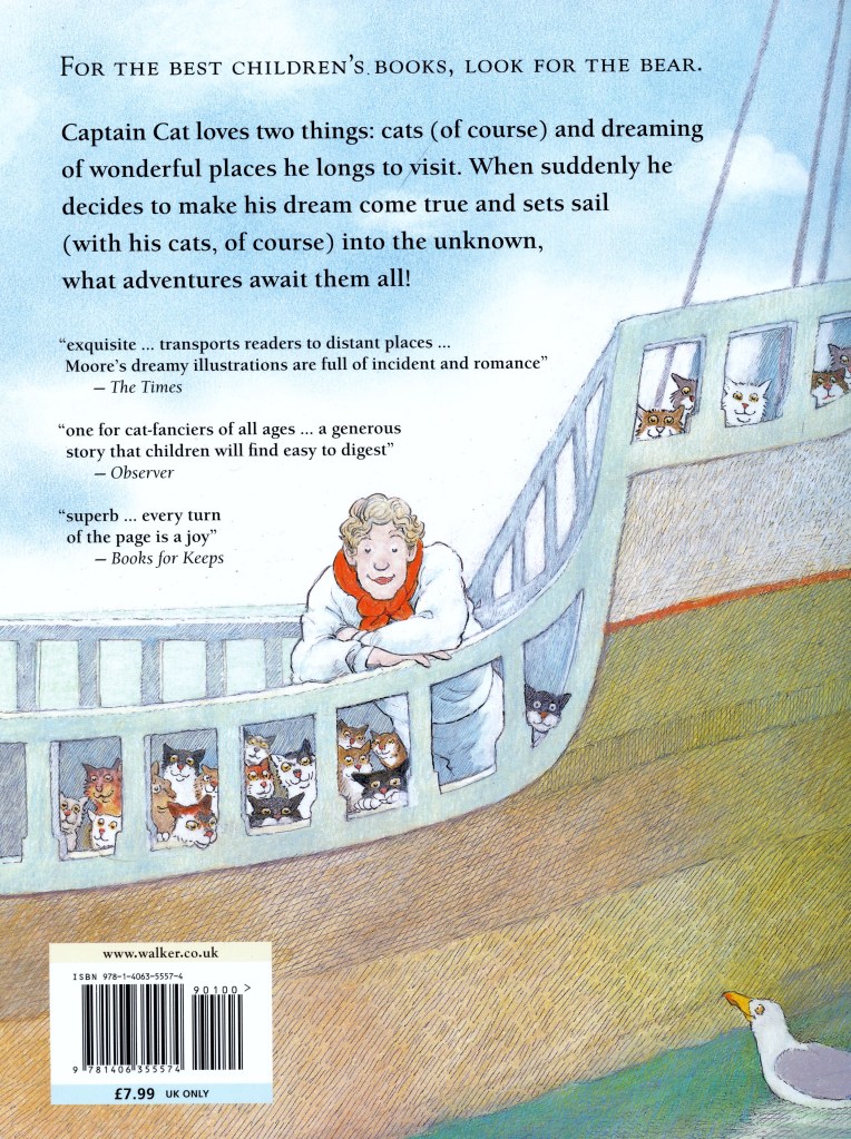 En la contraportada del libro leemos: “El Capitán Gato tiene dos pasiones en su vida: los gatos (claro) y soñar con los maravillosos lugares que ansía conocer. Cuando por fin decide hacer realidad su sueño y zarpar (con sus gatos, claro) hacia tierras desconocidas, ¡cuántas aventuras les esperan a todos!” El diario “Observer”, en su crítica del libro, escribió: “Ideal para los amantes de los gatos de cualquier edad”.