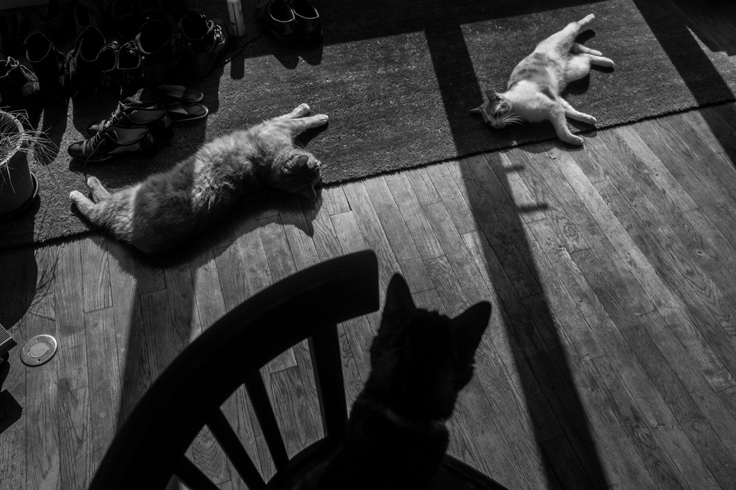 Y cuando vuelve a casa, entre un viaje y otro, hace fotos a los gatos que viven con Isabelle, su esposa. Es fácil deducir, por las fotos, que siempre hay gatos en la casa de Fécamp, en Normandía, donde residen desde 1995.