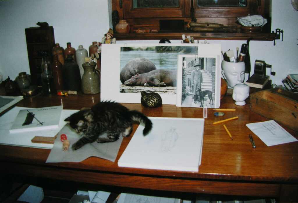 Tenía un taller en la calle Crêt de Lausana, como demuestra la foto del gato Pitschi subido al caballete. Para entonces ya vivían en la vieja granja del pueblo de Villars-le-Comte, a unos 30 kilómetros de Lausana, donde en 1970 expuso por primera vez en la galería Artésia. Seguía muy próximo al surrealismo y apenas hay animales en esta época.