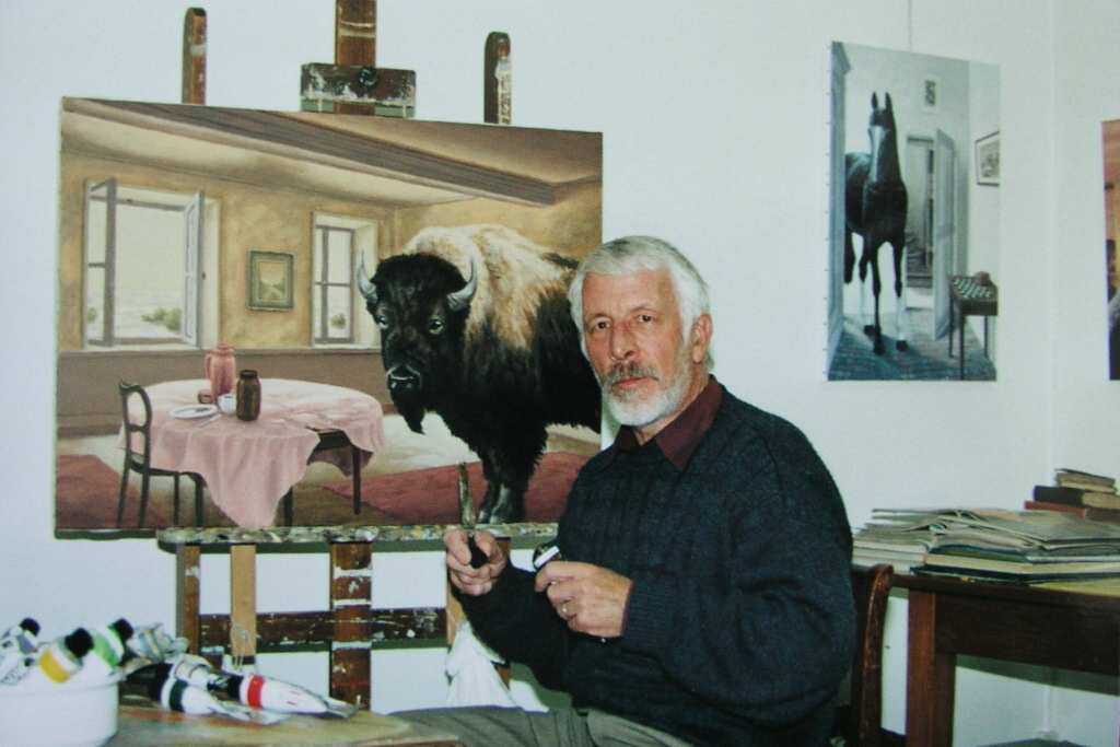 “Por eso mis cuadros representan en su mayoría a animales, aunque en situaciones insólitas, porque los primeros pasos que di en la pintura fueron en el surrealismo. Me distancié poco a poco, pero algo me quedó”.