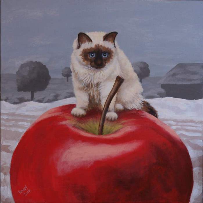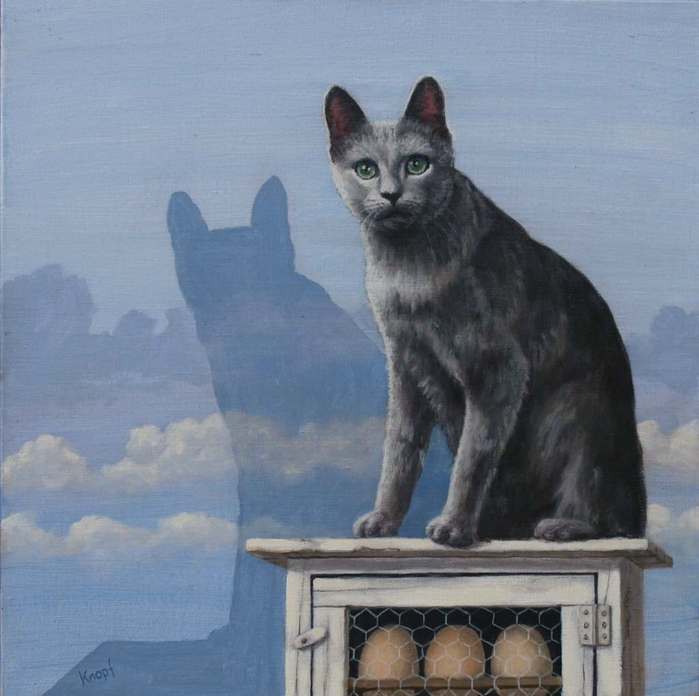 François Knof, pintor suizo, expuso por primera vez en 1987 y la noche antes de la inauguración vendió todos los cuadros – un total de 41 – a un coleccionista. Nos atrevemos a decir que es el sueño de cualquier pintor. En varias críticas se le compara con el belga René Magritte, pero no acabamos de ver el parecido.
