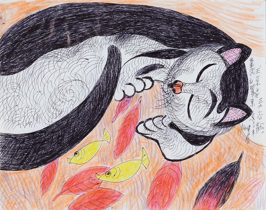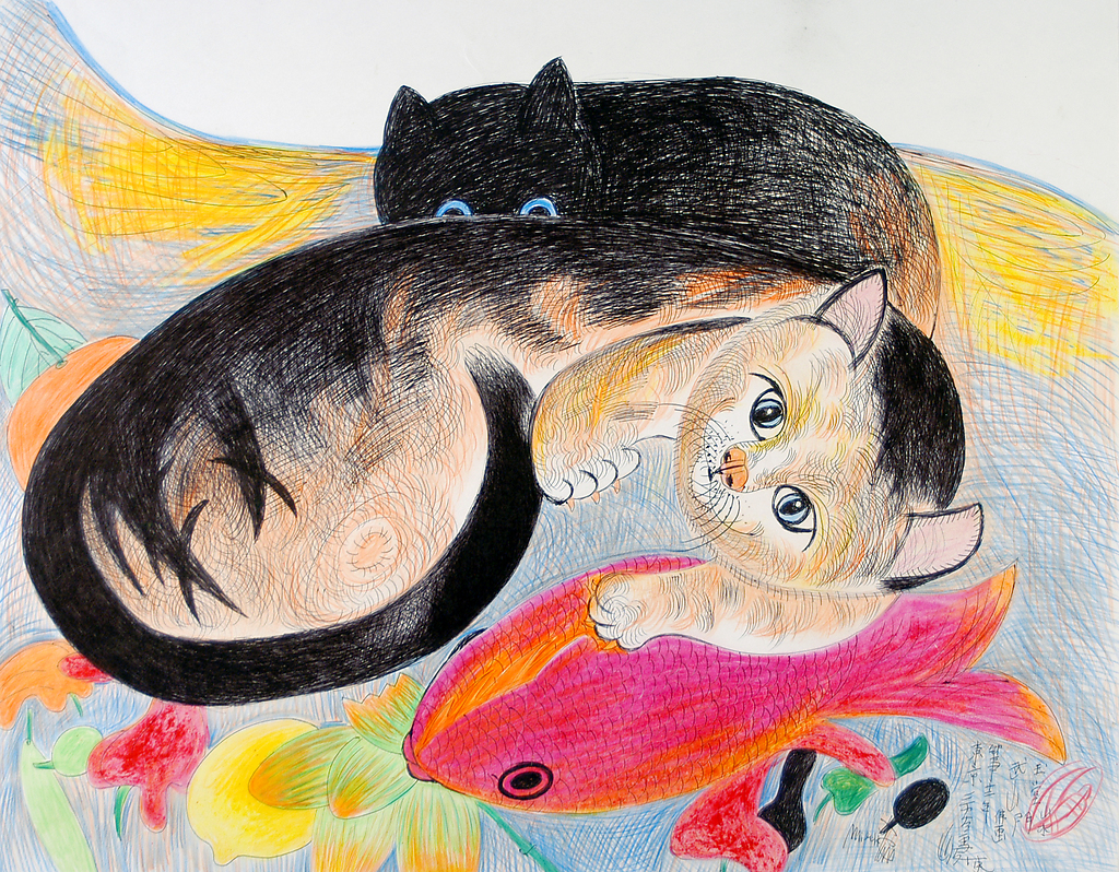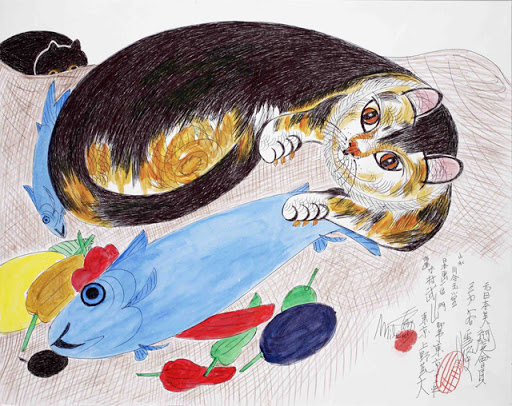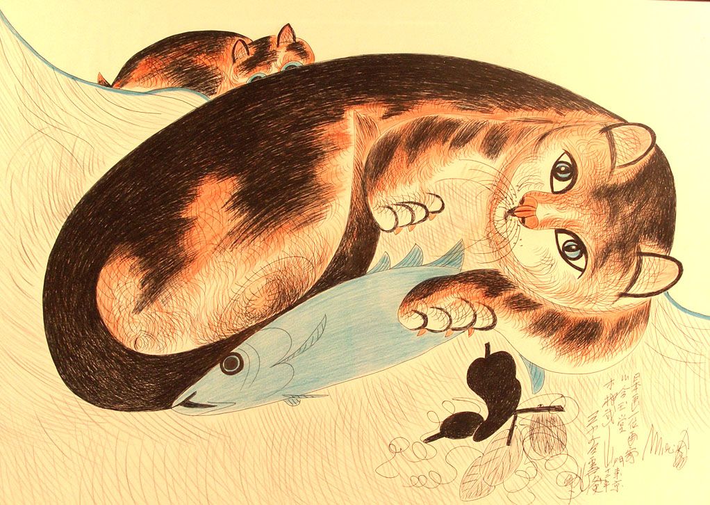 Gatos que, en muchos casos y a primera vista, parecen ser el mismo dibujo, pero los peces cambian, los gatos cambian, las plantas cambian… Jimmy decía que desde pequeño siempre le habían gustado los gatos.