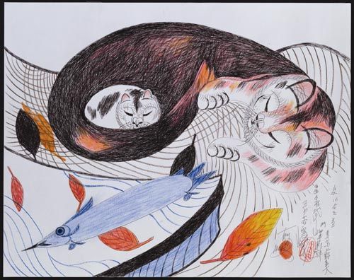 Sus dibujos ilustran un libro infantil titulado “The Cat who Chose to Dream” (El gato que escogió soñar), de Loriene Honda, con prólogo del actor George Takei, el Sr. Sulu de la serie “Star Trek”, al que también le gustan los gatos.