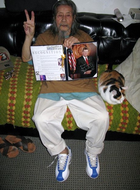 Se sentaba en la esquina de una calle del Soho de Nueva York y vendía sus cuadros a turistas y transeúntes. Nunca aceptó una limosna y siguió expresando su dolor, temores y tristeza a través de sus obras: las llamas de la bomba de Hiroshima, el campo de Tule donde le encerraron y gatos, gatos, gatos.
