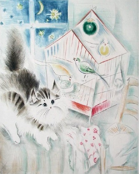 1. Formidable entrada, como siempre. Las obras de Possoz son encantadoras, hay un algo infantil y delicado en sus ilustraciones que puede moverlo a uno fácilmente hacia la ternura. Aprovechando el comentario, me gustaría saber si en el blog hay algo sobre Gottfried Mind, acabo de enterarme que fun un pintor muy dedicado a los felinos; algo dedicado Mark Twain, acabo de leer su cuento “Tom Quartz”, que versa sobre un peculiar felino minero; y algo sobre los gatitos en los emblemas médiévales, leí esto: https://www.facebook.com/groups/189810055109040/permalink/912500036173368/?app=fbl y tengo muchas ganas de saber más al respecto; ojalá puedas revisarlo, los comentarios sobre todo.