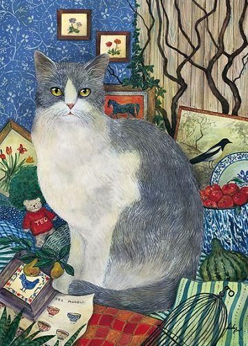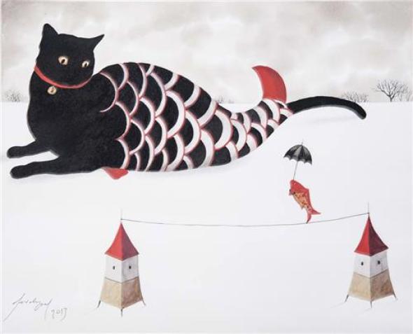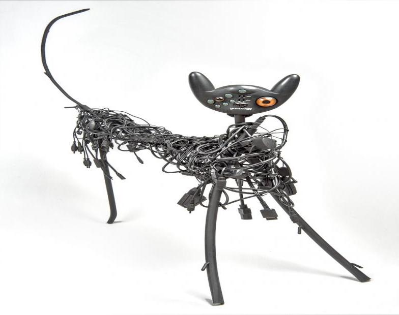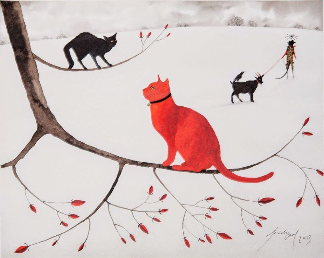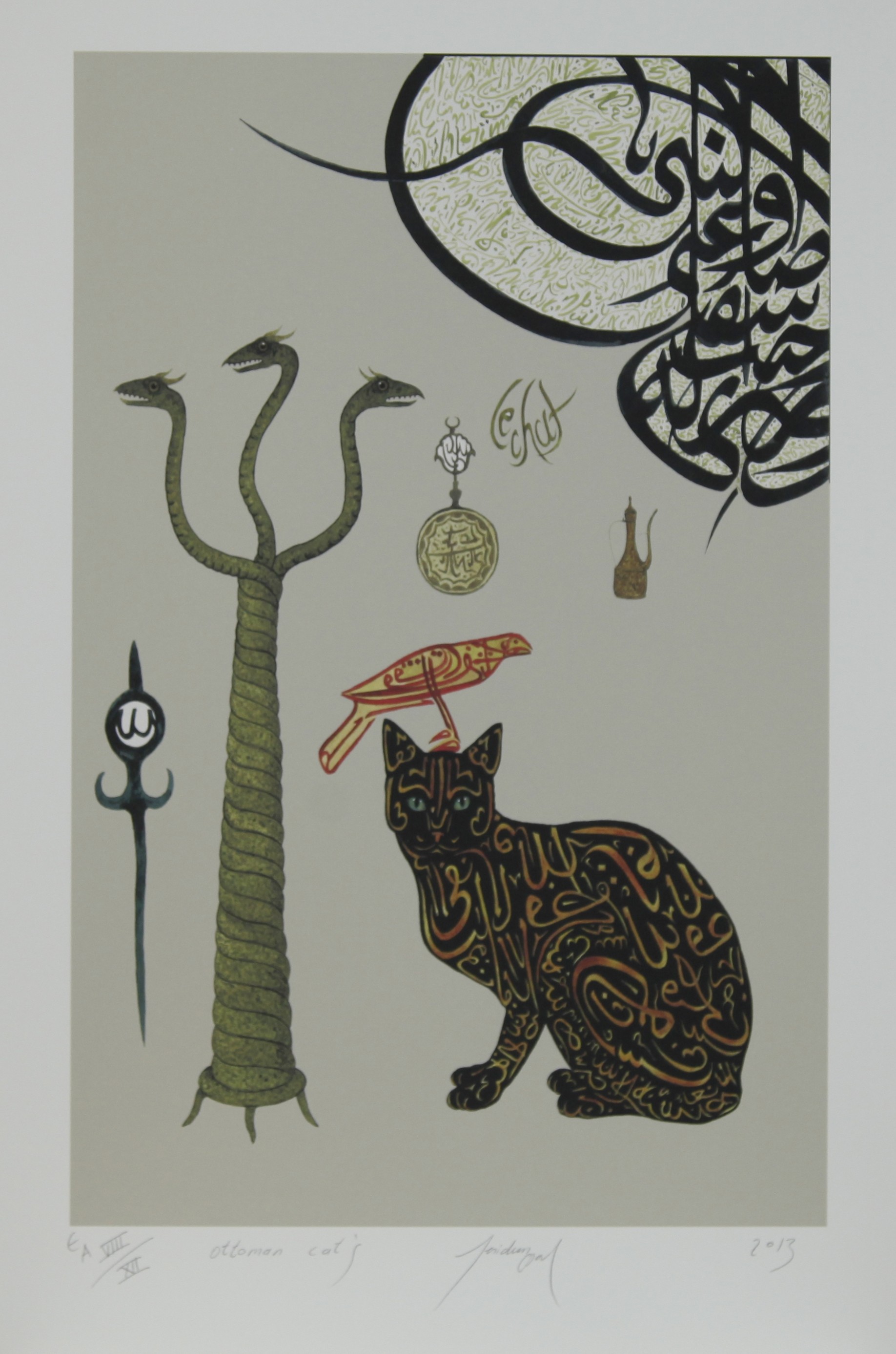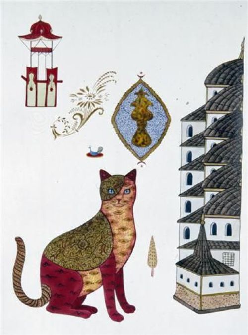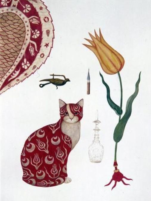 No solo se dedica a la ilustración, también trabaja con otros elementos: tejidos, madera, cerámica e incluso materiales de reciclaje, como puede verse en el genial “Gato Microsoft”. Vive y tiene el taller en Estambul.