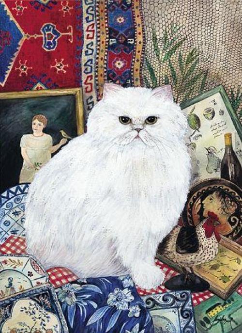 La gran mayoría de sus cuentos giran en torno a animales, y muchos tienen a un gato como protagonista. Por desgracia, solo hemos encontrado uno traducido al castellano, “La manzana roja”, y el personaje principal no es un gato, sino un conejo.