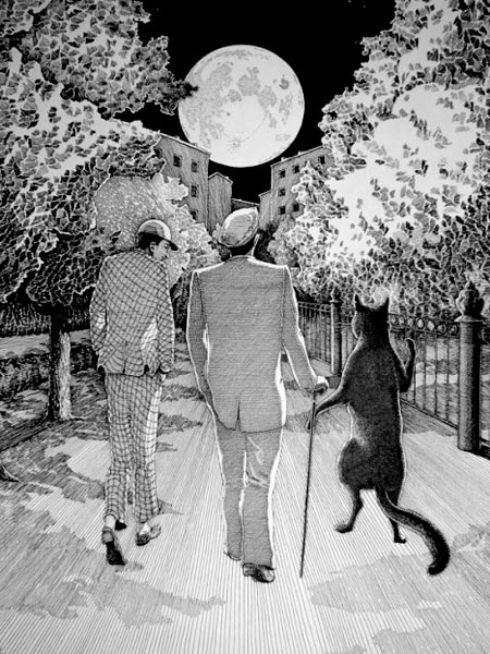 Pero volviendo a la novela, en la primera versión, escrita entre 1928 y 1929, y cuando aún se titulaba “El mago negro”, el director del teatro visita a Voland y parece ser que aparecía la frase siguiente: “El segundo gato estaba sentado en una extraña postura en la barra de la cortina”. ¿Pensaba el autor añadir un segundo gato?