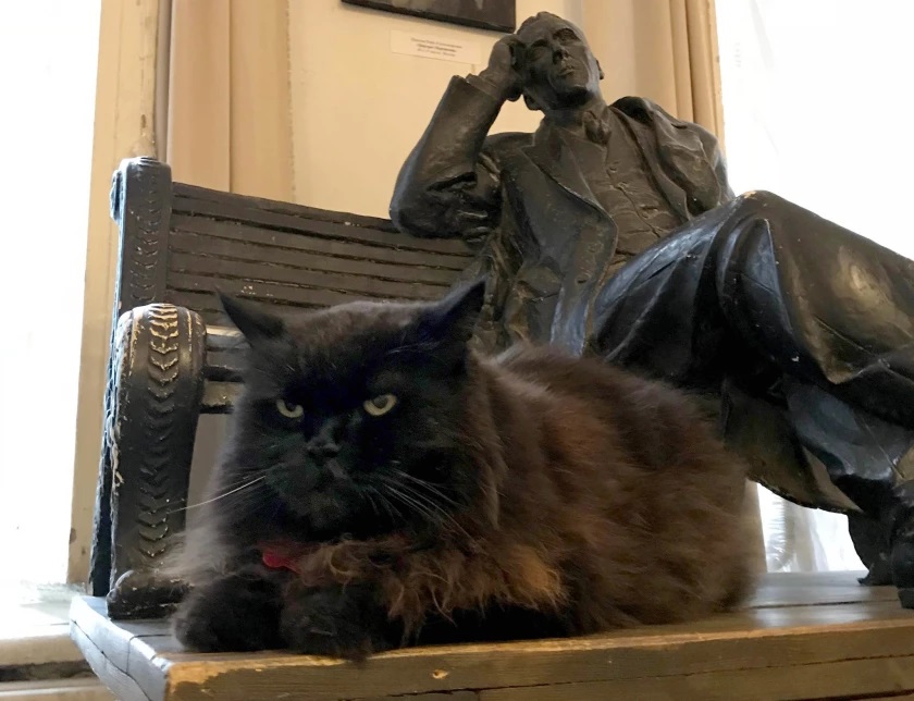 Y aquí es donde entra en escena el actual Behemot. En un museo dedicado a Mijaíl Bulgákov no podía faltar un gato negro de cierta importancia. Yevgeny Markov, el guarda nocturno del museo, le conoce desde que llegó siendo un gatito y le ha visto crecer hasta convertirse en un espléndido gato negro de pelo largo. En 2018 tenía 13 años, por lo tanto ahora tiene 16 o 17. No hemos encontrado ninguna referencia indicando que Behemot no siga ocupando su puesto en el museo.