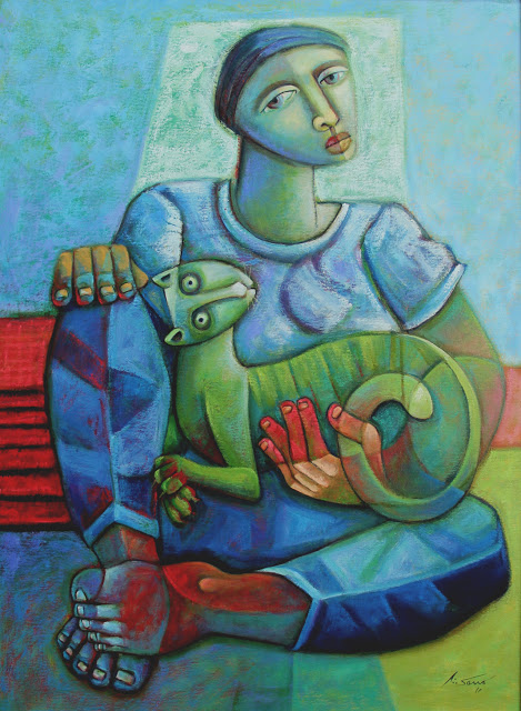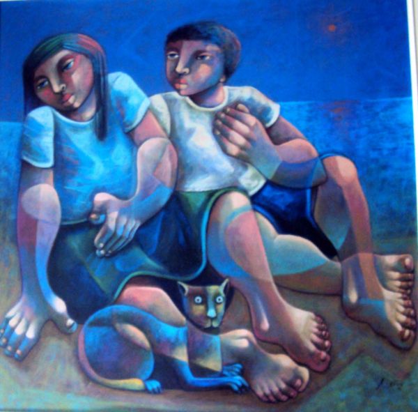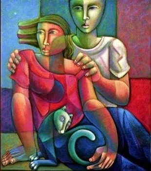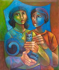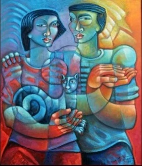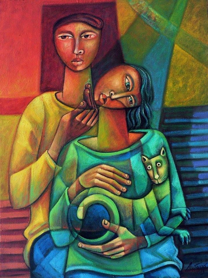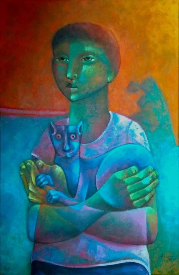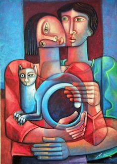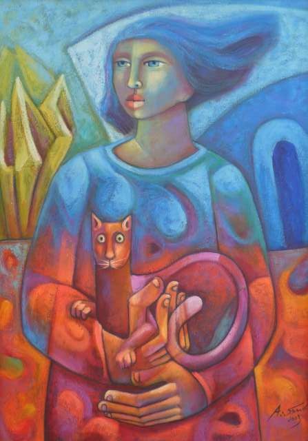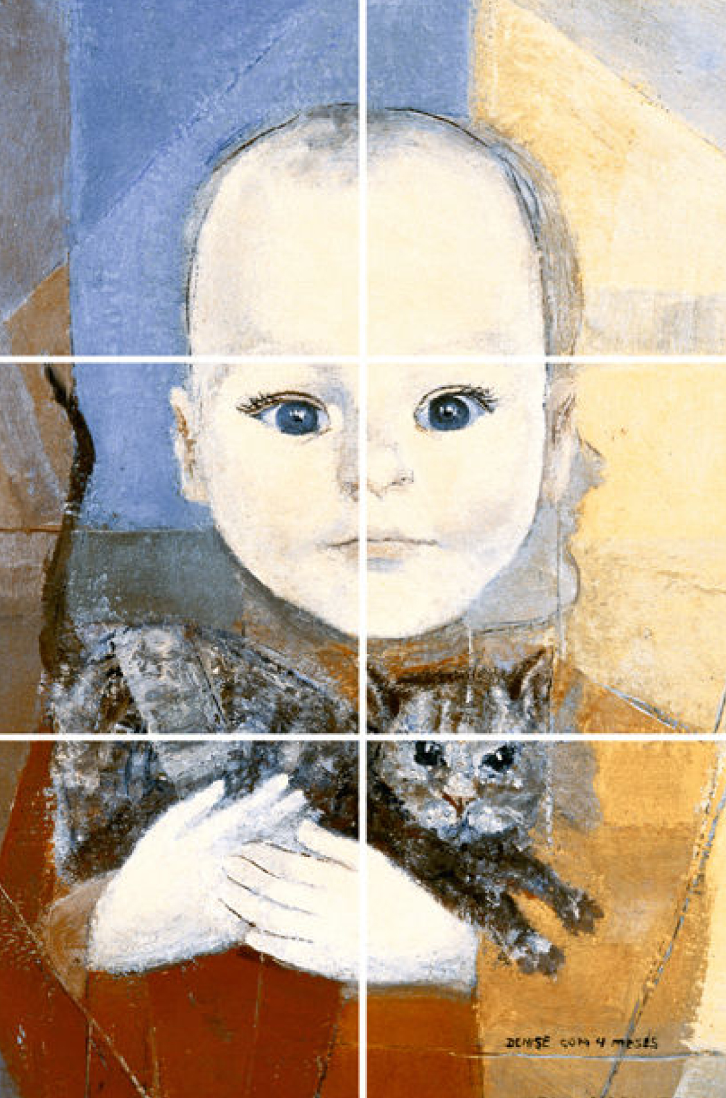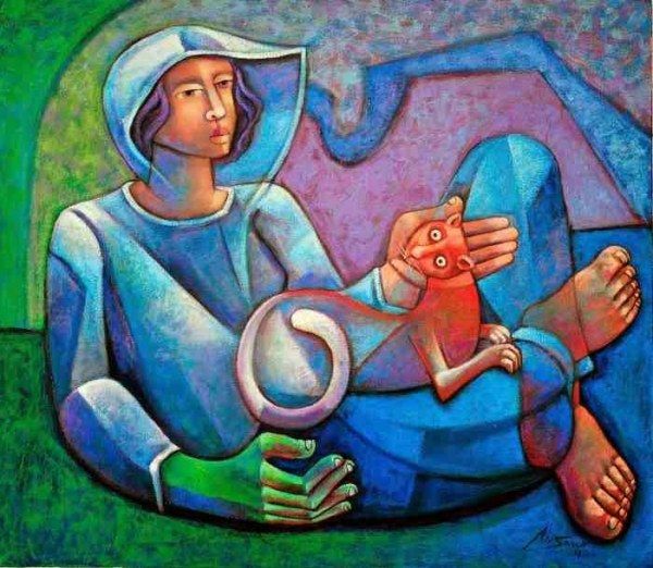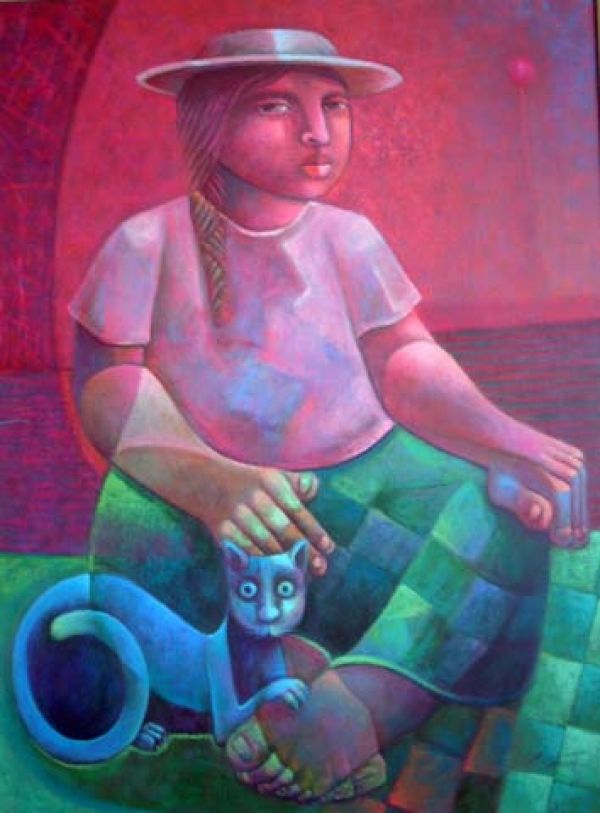 Viendo la obra del pintor, nos llamó la atención que la mayoría de los animales vivos que incluía en sus composiciones fueran gatos. Hay aves – pero son mucho más simbólicas –, algún que otro perro y poco más. Los peces aparecen en bandejas, para ser vendidos. Se centra en mujeres y hombres solos, en pareja o pequeños grupos, y de vez en cuando – su obra es muy amplía – con un gato.