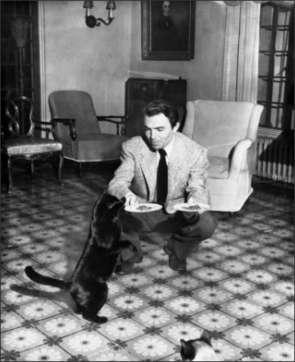 En Estados Unidos seguían teniendo nueve gatos. En otra entrevista realizada en los años cincuenta, Pamela Kellino le explica al periodista – a quien le parecen muchísimos gatos – que si te gustan los gatos, siempre llegan más. Mason añade con cierta ironía: “La señora de George Sanders sale disparada para Europa y nos pide que cuidemos de su gato. Regresa, pero se olvida del gato, y el gato se convierte en uno de los nuestros”. La “señora de George Sanders”, en esos años, era Zsa Zsa Gabor, nada menos. De ahí la “cierta ironía”.