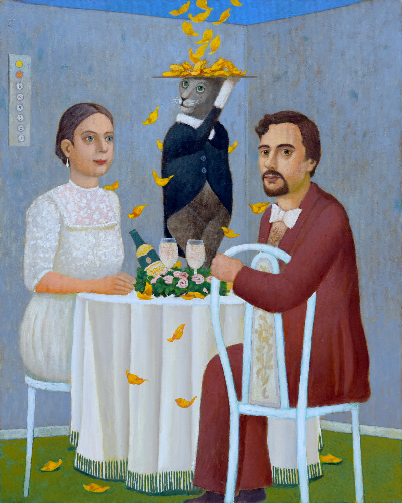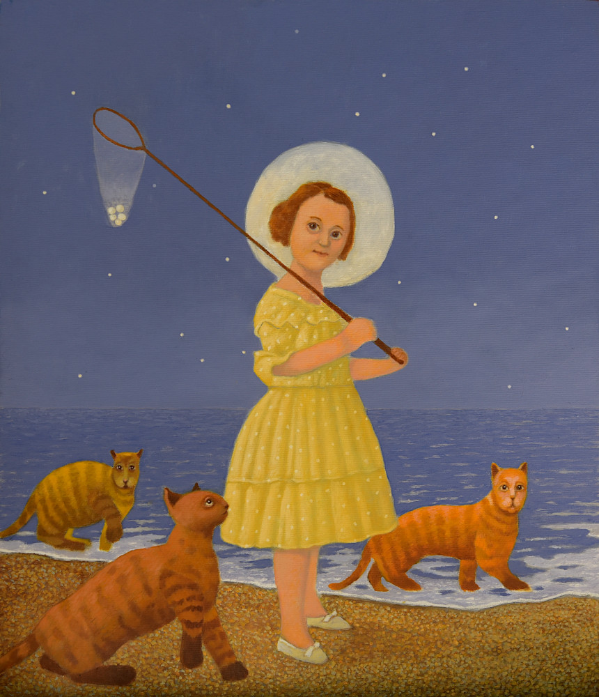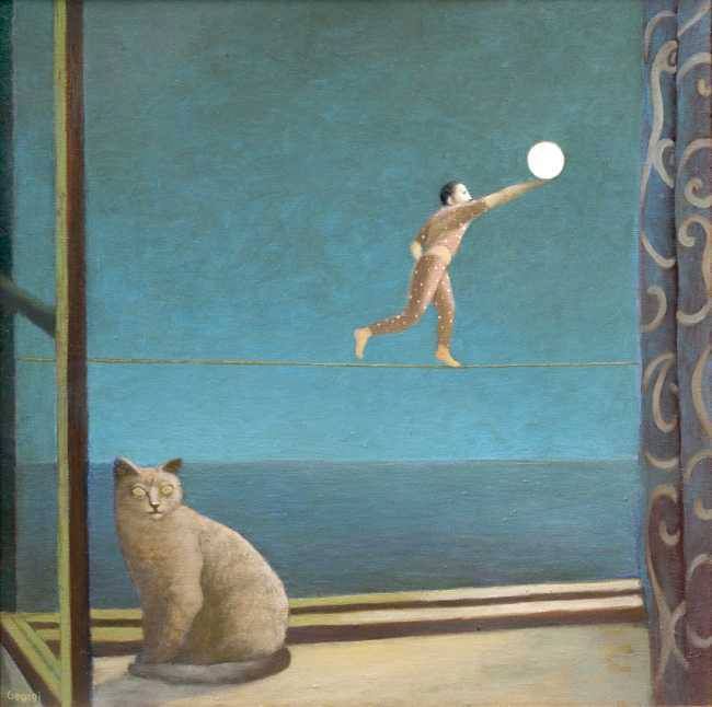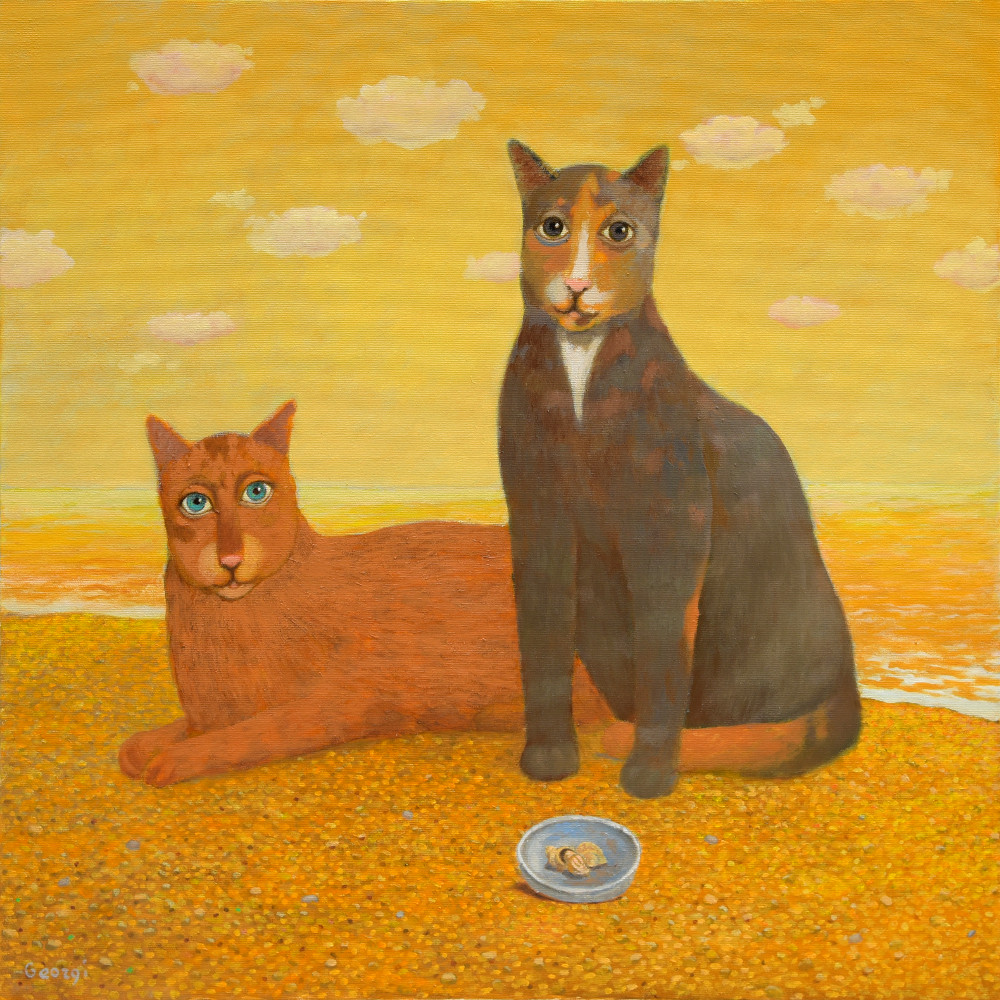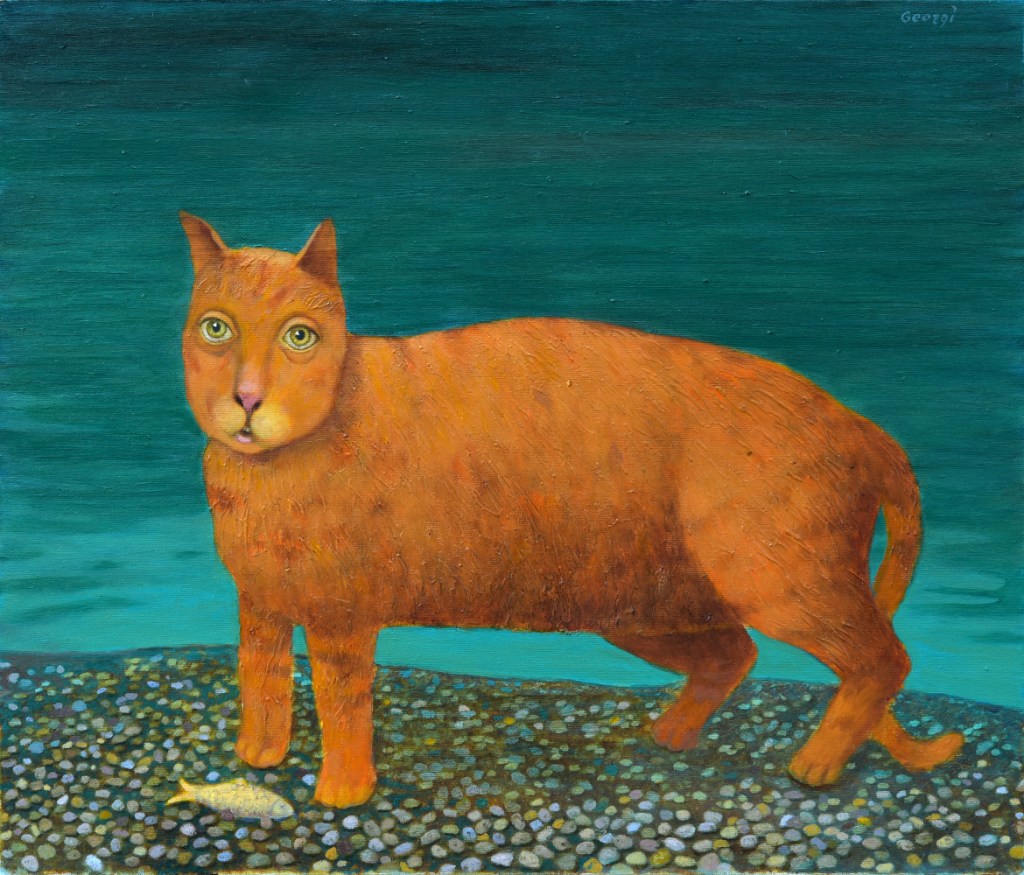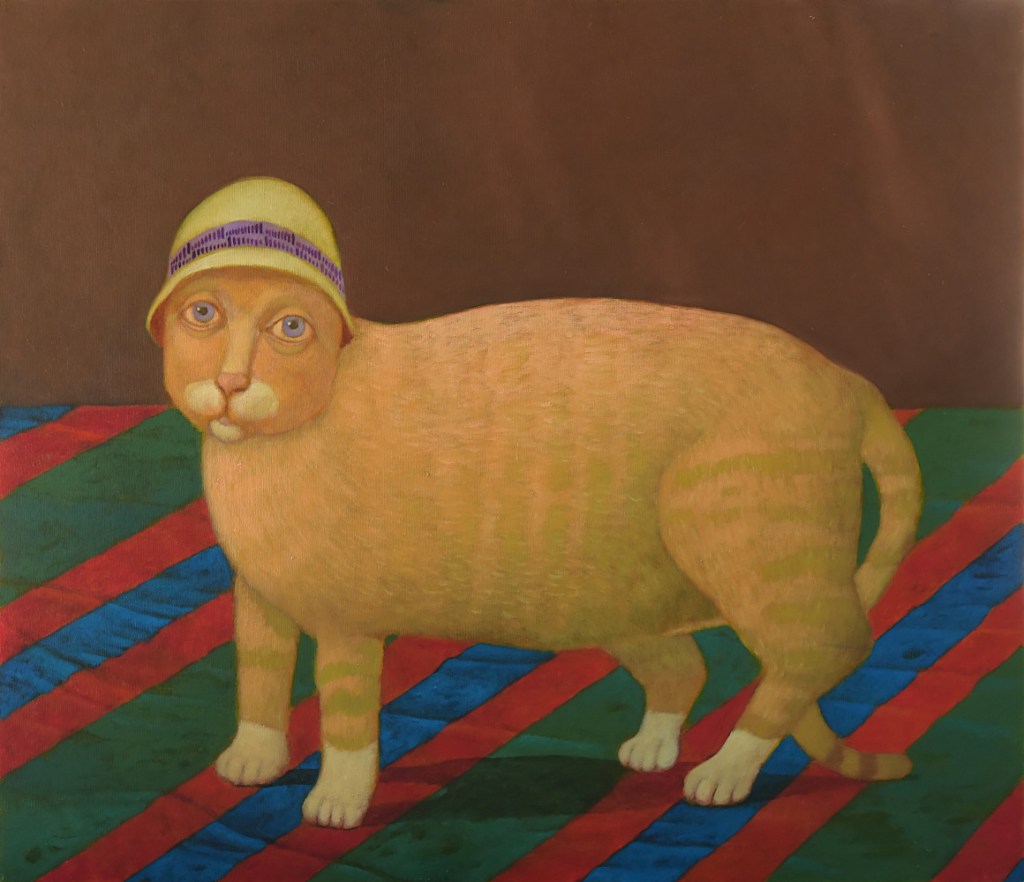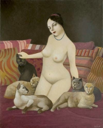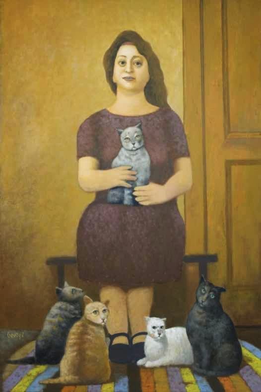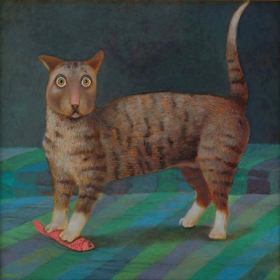 Y esta es toda la información que hemos podido encontrar de un pintor con mucho sentido del humor y merecedor de estos premios. Los gatos no son los únicos animales que utiliza en sus cuadros, también hay aves, perros, peces, un poco de todo…