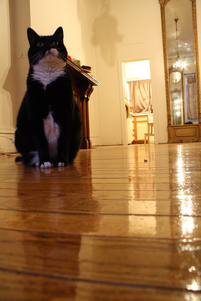 Morir – eso no se le hace a un gato./ Pues ¿qué puede hacer un gato/ en un piso vacío?/ ¿Trepar por las paredes?/ ¿Restregarse contra los muebles?/ Aquí nada parece haber cambiado,/ pero nada es lo mismo./ Nada se ha movido,/ pero hay más espacio./ Y de noche no se enciende ninguna lámpara.
